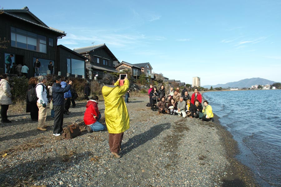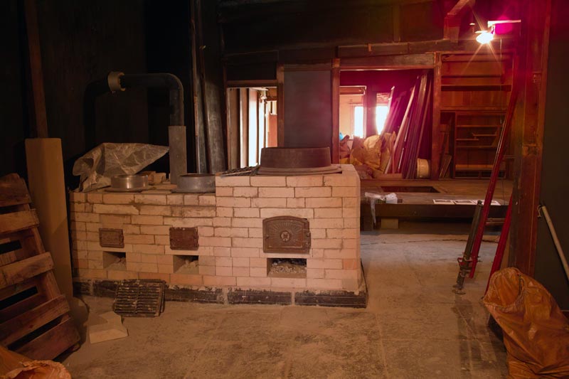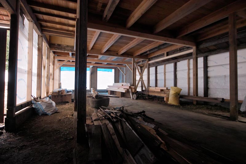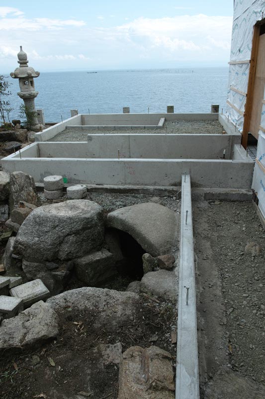 建物の左側奥、石庭だった部分に琵琶湖に面して風呂場を作っています。完成後は竹生島一望の風呂場となります