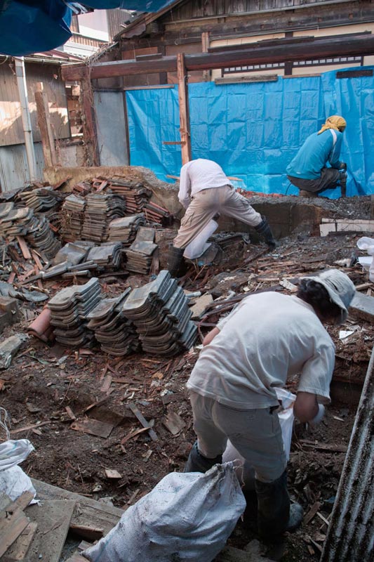 雨漏りしていた屋根を直して 新しい瓦を乗せています これまでの屋根はすぐ前の道路に水道を通したりする工事の頃から漏るようになったそうです。 なんとか直そうとされたものの、雨漏りは止まらなかったとか。 また雪が積もると何度も上って雪下ろしをしたそうです